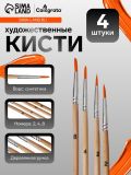 Набор кистей для рисования, синтетика, 4 штуки: № 2, 2, 4, 8, круглые, деревянная ручка, международный размер