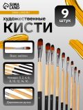 Набор кистей художественных, нейлон, 9 штук: № 0, 2, 4, 6, 8, 10, 12, 14, 16, закругленные, с длинными ручками, международный размер