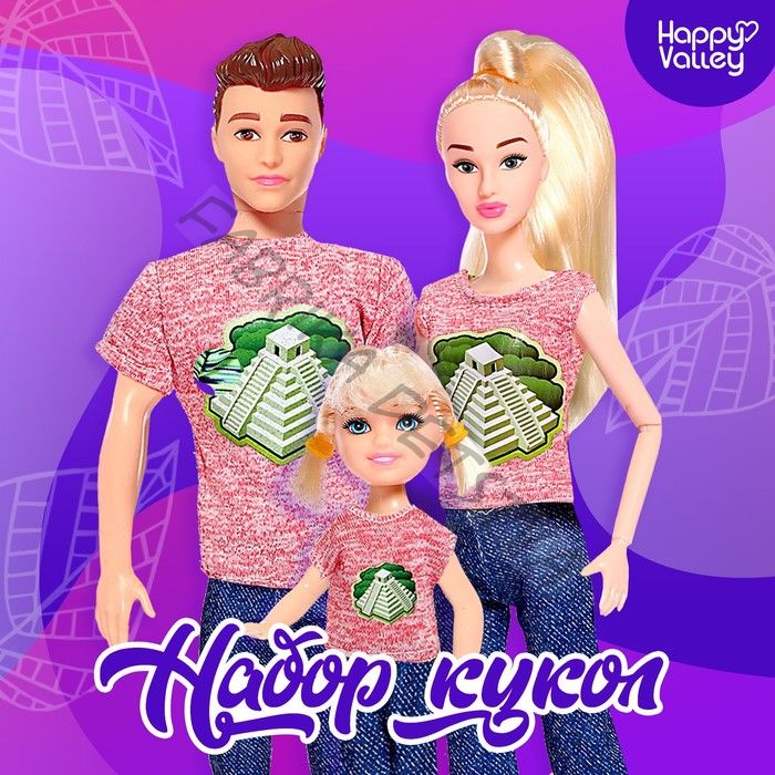 Порадуйте свою дочку целой кукольной семьёй. В наборе есть кукла-мама шарнирная, кен не шарнирный и дочка. Ваша девочка с удовольствием подружится с куколками, будет о них заботиться и осваивать социальные роли и модели поведения. Высота куколки-мамы — 29 см, куклы-папы — 29,5 см, куколки-девочки — 13,5 см. Юная хозяюшка покормит куколок и станет с ними играть. Сделает укладку на длинные волосы мамы, прошитые по окружности головы и на темечке, заплетет косички ребёнку (волосы малышки прошиты по окружности головы и пробор), отутюжит костюм для папы. Для детей старше 3 лет.