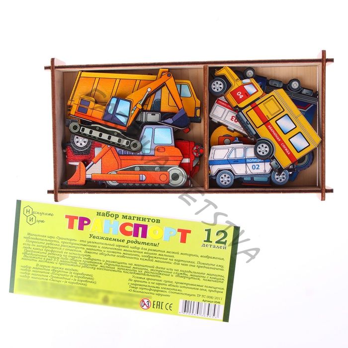 Набор магнитов «Транспорт», в коробке, 12 деталей