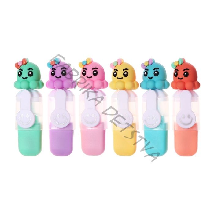 Набор маркеров текстовыделителей 6 штук 6 цветов, в пенале на молнии Осьминог