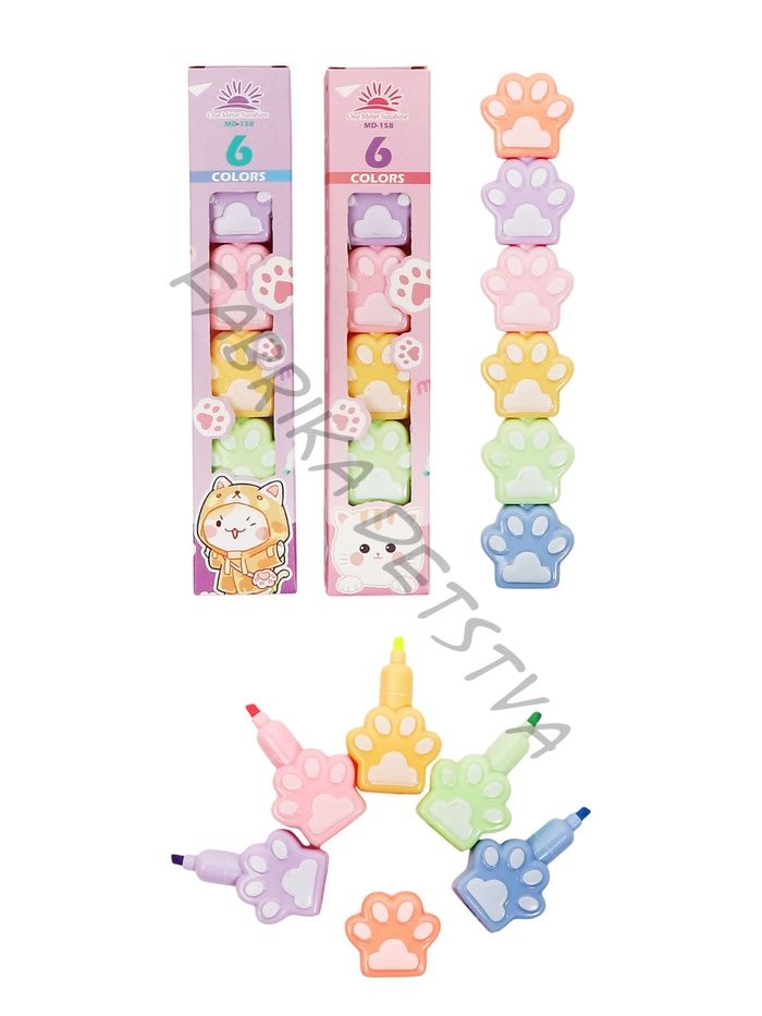 Набор маркеров-текстовыделителей «Лапки», 6 цветов, скошенный наконечник, узел 4 мм