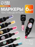 Набор маркеров-текстовыделителей «Мини-Бутылочка/Планеты», 6 цветов, скошенный наконечник, узел 5 мм