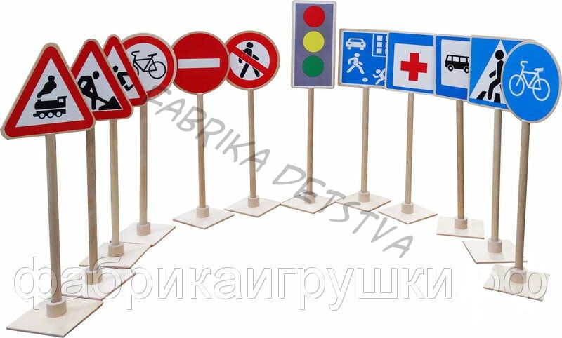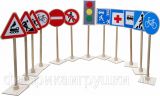Предназначен для занятий с детьми в детских дошкольных образовательных учреждениях. Познакомит маленьких пешеходов с правилами дорожного движения. Дорожные знаки выполнены из фанеры и массива дерева.
