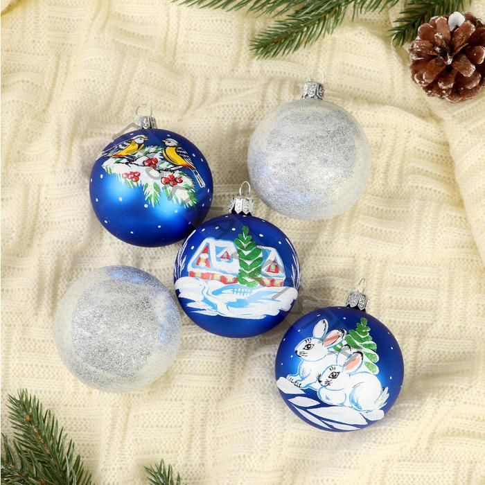 Набор новогодних шаров «Стужа», 5 шт., d=6 см, МИКС