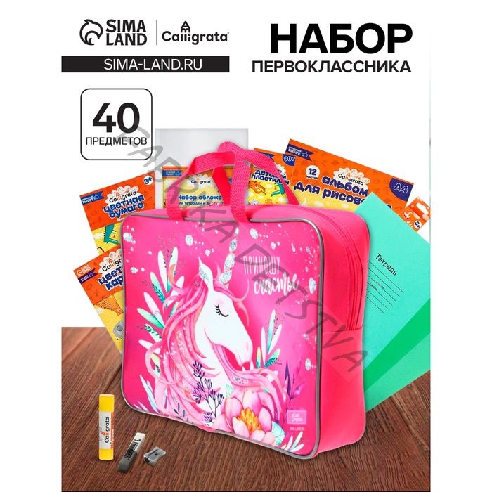 Набор первоклассника, 40 предметов, Calligrata «Приношу счастье», в папке
