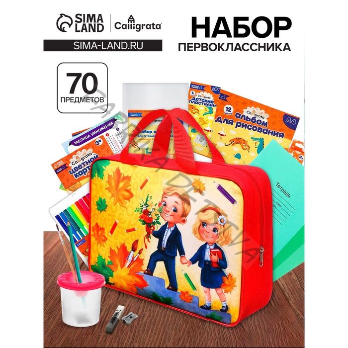 Набор первоклассника, 70 предметов, Calligrata «Снова в школу», с пособиями, в папке