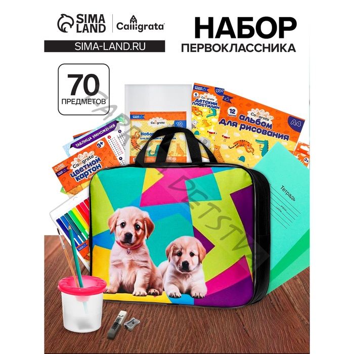 Набор первоклассника, 70 предметов, Calligrata «Собачки», в папке