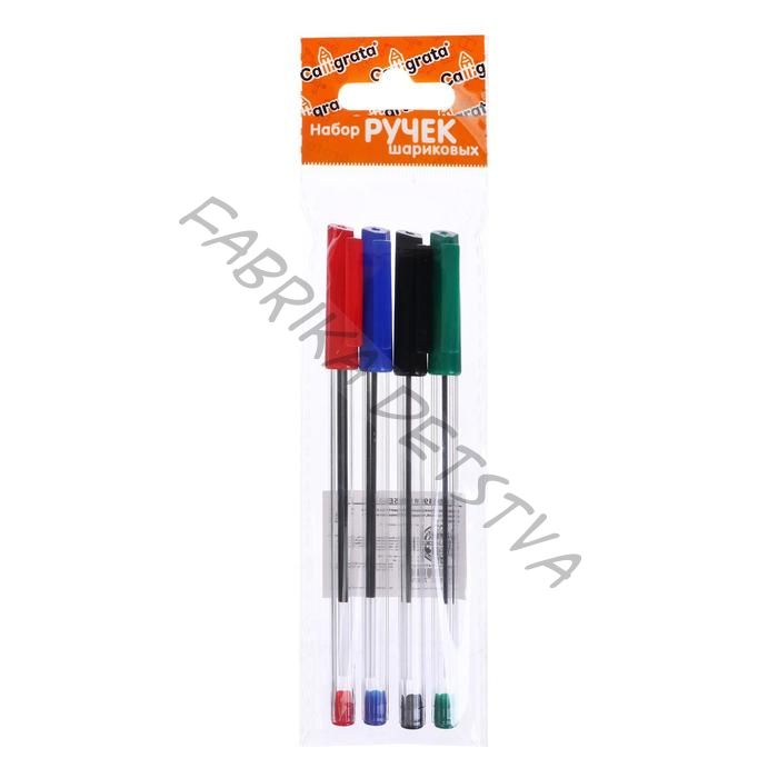 Набор ручек шариковых 4 цвета, стержень 1,0 мм синий, красный, чёрный, зелёный, корпус прозрачный