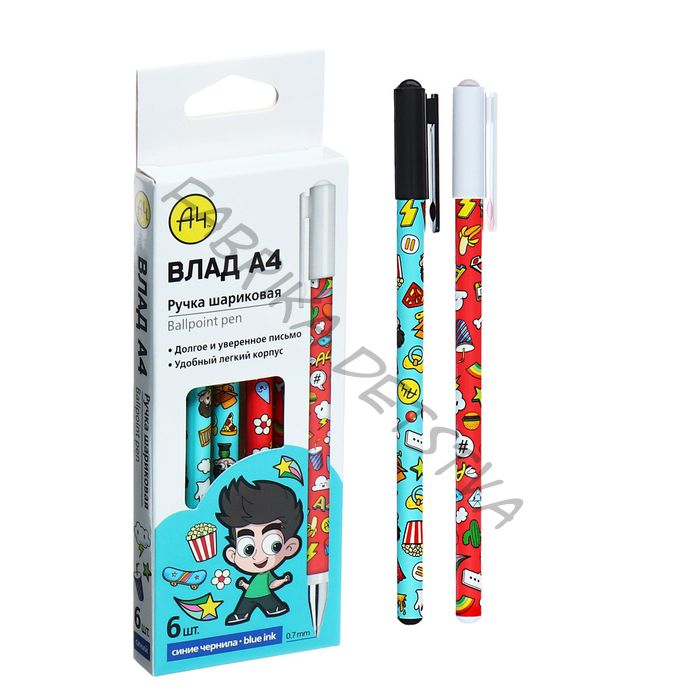 Набор ручек шариковых 6 шт., «Влад А4», 0.7 мм, синие чернила
