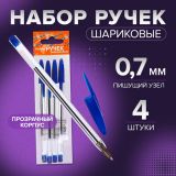 Набор шариковых ручек Calligrata, 4 штуки, синий стержень, узел 0.7 мм, прозрачный корпус с синим колпачком