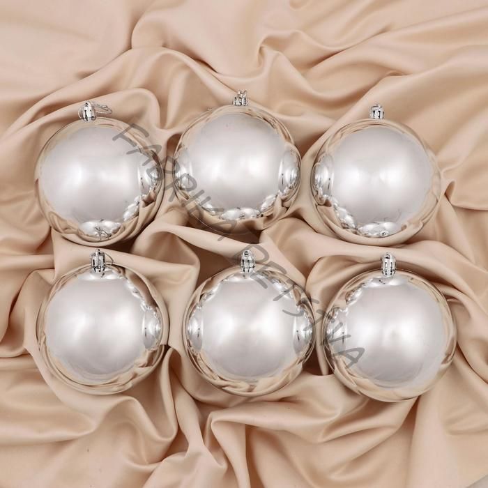 Набор шаров пластик d-10 см, 6 шт "Глянец" серебро