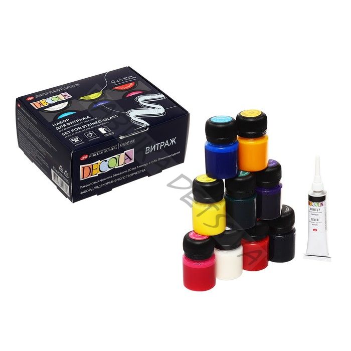 Набор витражных красок по стеклу Decola, 9 цветов x 20 мл + контур