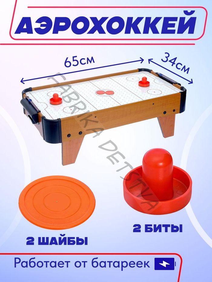«Великолепный матч» — настольная игра для детей от 3 лет. Устройте настоящую баталию прямо дома — соберите всю семью и сыграйте в увлекательный аэрохоккей. Цель игры — забить как можно больше шайб своему сопернику и не дать ему покорить ваши ворота Особенности Настольная игра работает от 8 батареек типа АА, в комплект не входят. Яркие насыщенные цвета привлекают внимание. Размер игрового поля: 65 x 34 см. Настольная игра рекомендована для детей от 5 лет. Польза для развития Аэрохоккей «Великолепный матч» поможет развить координацию движений и скорость реакции, выработает спортивный азарт и волю к победе.