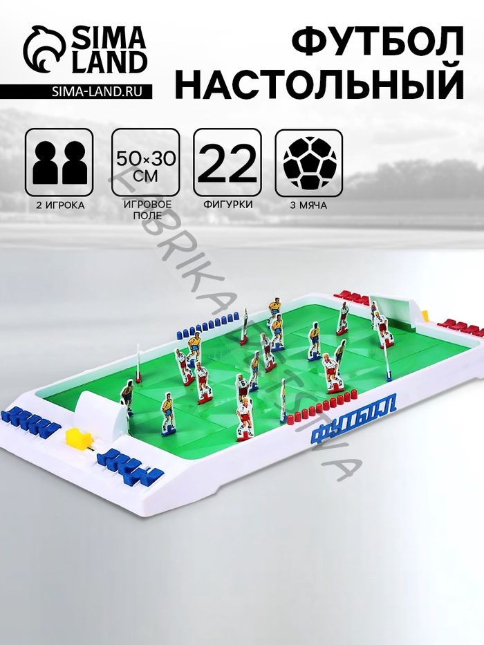 Стадион забит до отказа. Над футбольным полем стоит гул болельщиков. Они ликуют в ожидании выхода игроков. Достаньте из коробки настольную игру «Футбол», расставьте членов команды и начните матч за звание чемпиона. Разбейте противника и докажите своё первенство на поле! За каждого участника выступает 11 пластиковых футболистов: голкипер, 2 защитника, 3 полузащитника и 5 форвардов. Управление вратарём осуществляется с помощью бегунка по бокам поля, а остальными игроками — клавишами. Счёт матча ведётся пластиковыми фишками синего и красного цветов. Для кого? Для взрослых и детей от 6 лет. Чем полезна? Развивает координацию, моторику рук, реакцию и пристрастие к спорту. Что входит в набор? игровое поле, 3 мяча в виде стальных шариков, 22 фигурки футболистов, наклейки для футболистов, 20 фишек для счёта.
