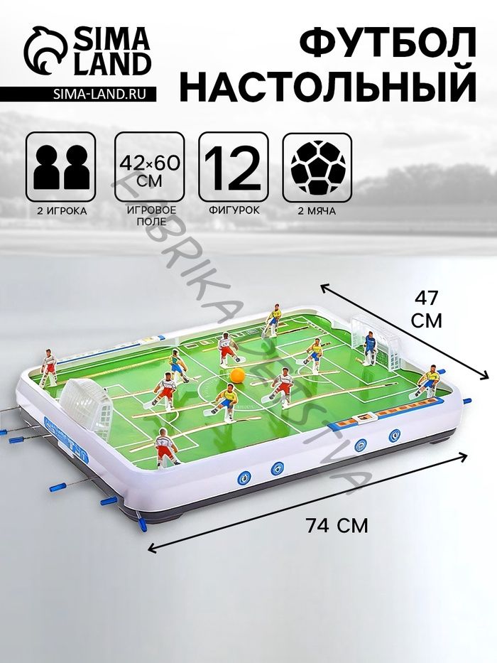 Футбол — любимая игра большинства малышей. Но для неё нужна специализированная площадка. С настольной игрой вы насладитесь спортивным развлечением прямо у себя дома. Как играть В футбол играют два человека, у каждого своя команда. Управляйте вратарём, защитниками и нападающими и забивайте мяч в ворота соперника! Побеждает игрок, который первым забьёт 9 голов противнику. Особенности настольной игры Игровой модуль выполнен из качественных экологичных материалов, они гипоаллергенны и безопасны для детского здоровья. Яркие насыщенные цвета привлекают внимание. Счётчик голов избавит игроков от необходимости считать забитые мячи в уме. Размер игрового поля: 42 x 60 см. Настольная игра рекомендована для детей от 3 лет. Чем полезна настольная игра С настольной игрой «Мини-футбол» ребёнок прокачает координацию движений и скорость реакции, выработает спортивный азарт и волю к победе.