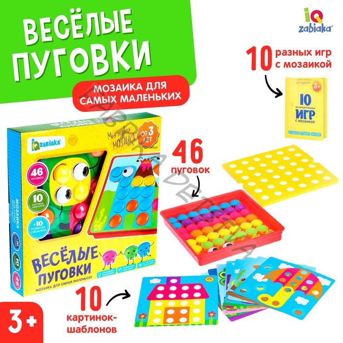 «Весёлые пуговки» – отличная игра-мозаика в подарок каждому малышу! Крупные яркие детали и 10 разноцветных картинок не оставят равнодушным никого. Развивайте мышление, внимание и моторику! В набор также входит брошюра для родителей, в которой вы найдёте целых 10 разных развивающих игр, в которые можно поиграть с деталями данной мозаики!
