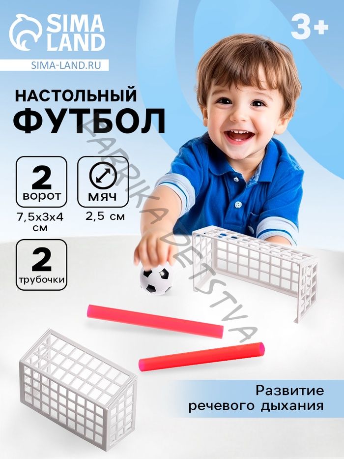 Оле-оле: настольный мини-футбол поможет вам не только весело и увлекательно провести время, но и потренировать дыхание. Дуйте на мяч через трубочку и старайтесь забить гол. Победит тот, кто «забьёт» больше голов в ворота противника! Настольная игра подойдёт для домашнего досуга и вечеринки в кругу друзей. В комплекте: мяч диаметром 2.5 см, ворота — 2 шт., пластиковые трубочки — 2 шт. Развиваемся, играя Игрушки радуют детей и делают их досуг весёлым и увлекательным. А ещё они помогают развиваться. Например использование трубочек для управления мячом требует точности и координации движений. Дети учатся контролировать дыхание и направлять поток воздуха, тем самым они тренируют навыки мелкой моторики рук и укрепляют координацию глаз и рук. Подарите себе и детям возможность развлекаться весело и с пользой для здоровья!