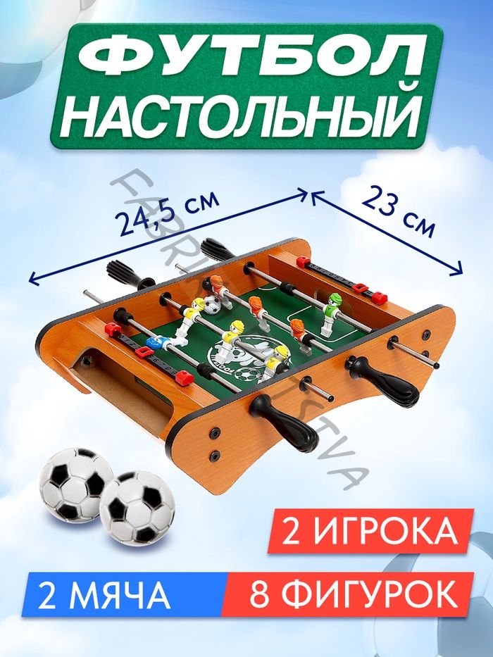 Настольный футбол «Уличный матч» — отличный выбор для активного досуга дома. Эта игра подойдет детям от 3 лет и взрослым, которые хотят весело провести время и устроить настоящее футбольное состязание. Особенности Размер игрового поля 23 x 24,5 см, его удобно разместить даже на небольшой поверхности. Игра рассчитана на двух игроков, что делает её идеальной для дуэлей между друзьями или членами семьи. Подходит для детей, начиная с трехлетнего возраста, благодаря простому управлению и безопасной конструкции. В комплекте 2 мяча — можно играть без перерыва, даже если один из мячей потеряется. Польза для развития Настольный футбол — это не только развлечение, но и способ развивать реакцию, координацию движений и внимание. Идеальный подарок Настольный футбол станет замечательным подарком на день рождения, Новый год или просто как знак внимания. Эта игра объединяет поколения, ведь она интересна как детям, так и взрослым.