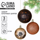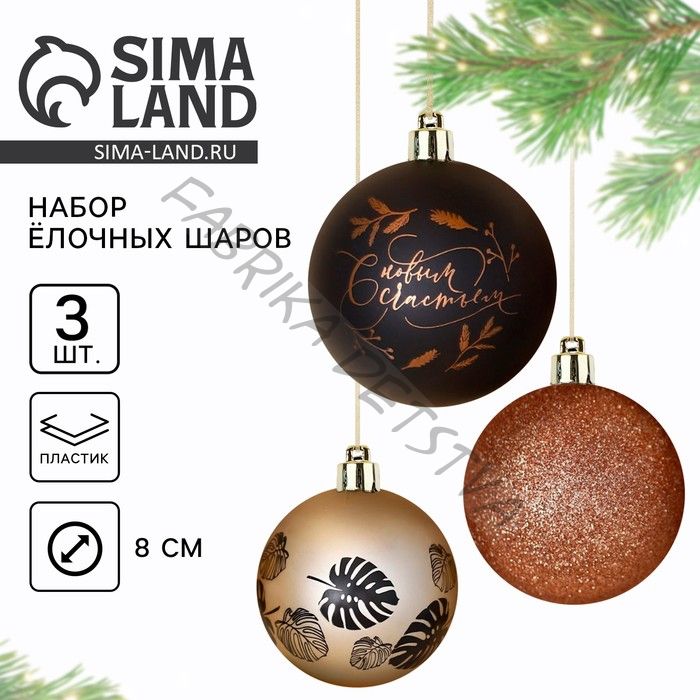 Новогодние шары ёлочные «С новым счастьем!», пластик, d=8, 3 шт., цвет чёрный и жемчужный