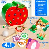 Набор станет прекрасным подарком для каждого ребёнка! Играя с ним, малыш будет всесторонне развиваться. Чем полезен набор: Магнитная рыбалка поможет потренировать координацию движений Пазлы развивают моторику и внимание Тренажёр развивает речевое дыхание Игра на липучках поможет запомнить цвета и формы