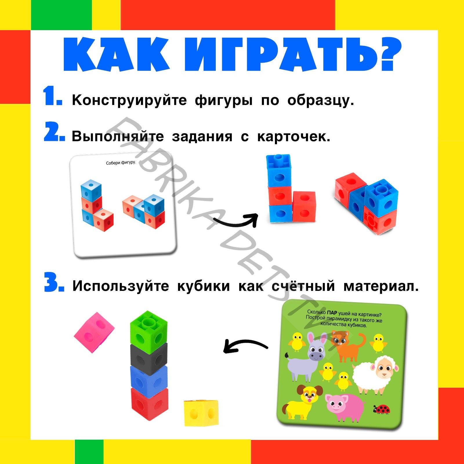 Обучающий набор «Кубики-конструктор: логика и внимание» с заданиями, 50 кубиков, по методике Монтессори