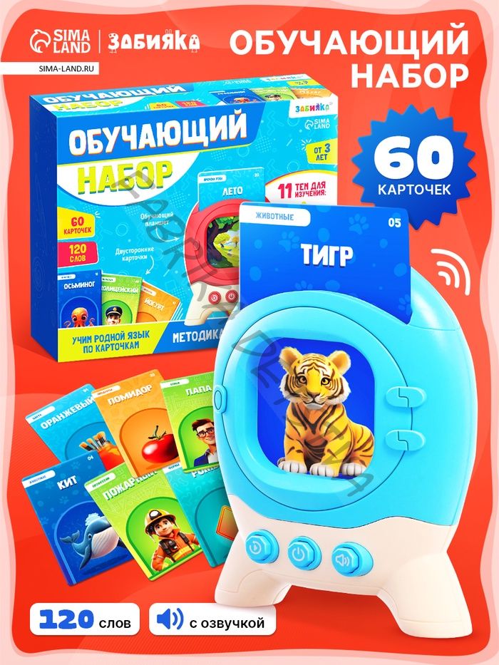 Обучающий набор с карточками, русская озвучка, 60 карточек, голубой