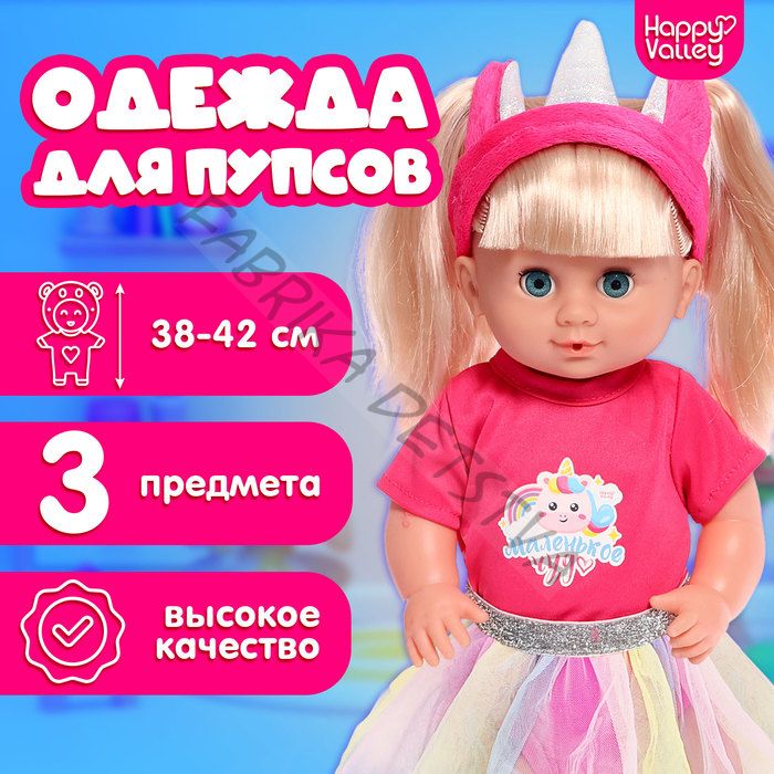 Одежда для пупсов «Единорожка», боди, юбка и повязка