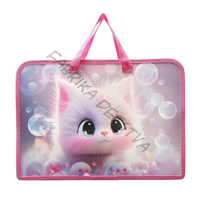 Папка для чертежей и рисунков А4, 340 х 245 мм, 75мм, с ручками, пластик, ПТ-14-4 "Котик аниме" 72192