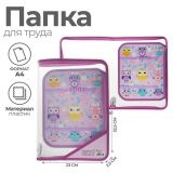 Папка для труда А4, 325 х 230 х 25 мм, молния вокруг, откидная планка, пластиковая, ПТР-1, Calligrata, "Совушки"