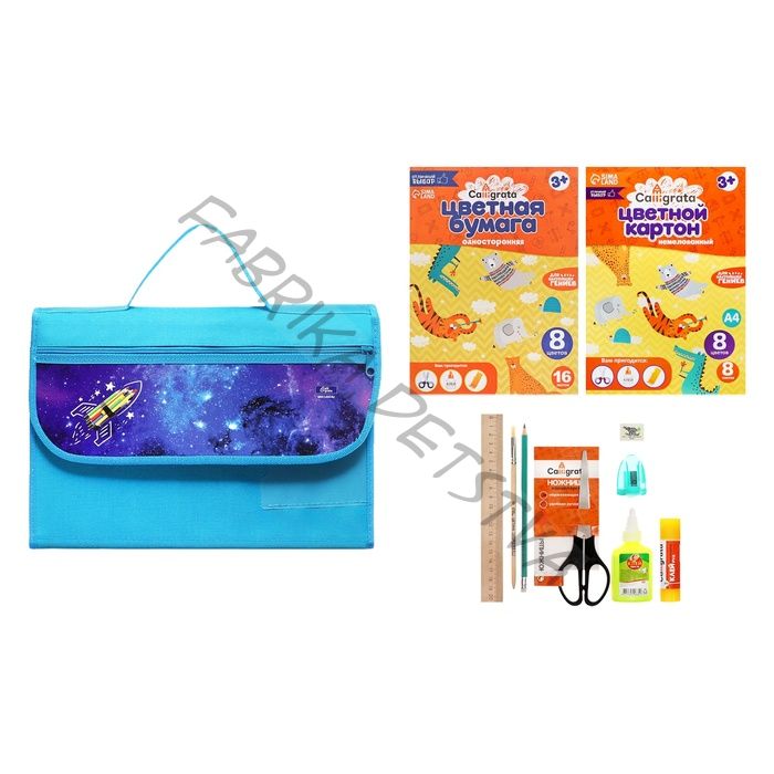 Папка для труда А4, 330x230, с ручками текстиль, раскладная на липучке, с наполнением 10 предметов, Calligrata, ПТР-10, «Ракета»