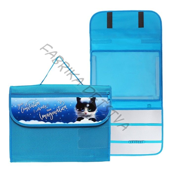 Папка для труда А4, с ручками текстиль раскладная на липучке, "Котик в снегу", ПТР-10