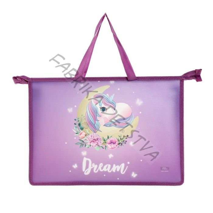 Папка с ручками А4, 335 х 235 х 55 мм, пластиковая, ручки-тесьма, Calligrata "Единорожка"