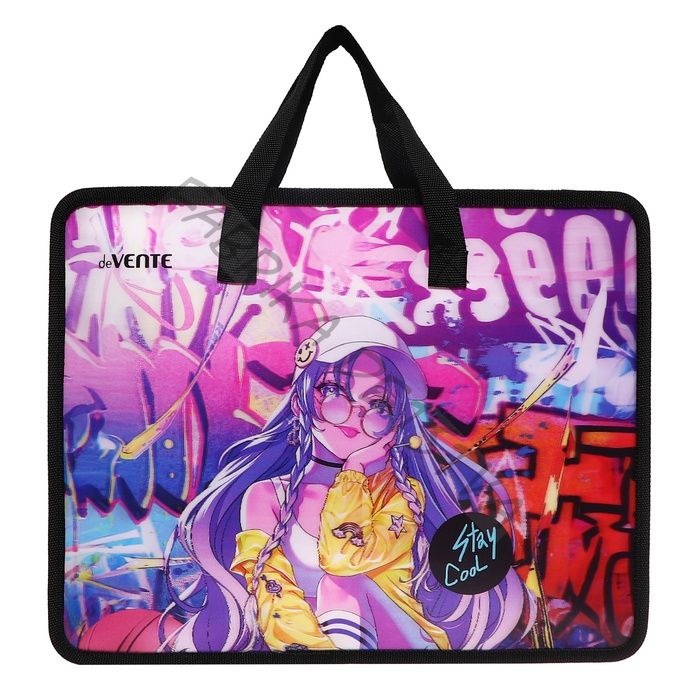 Папка с ручками А4, 335 х 260 х 100 мм, пластиковая, ручки-текстиль, deVENTE Stay Cool, сиреневая