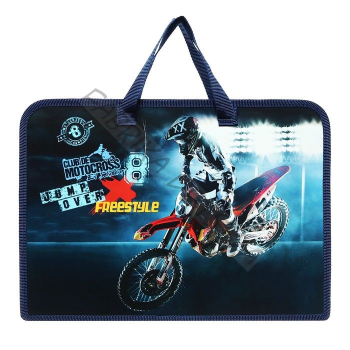 Папка с ручками А4, 340 х 245 х 40 мм, пластиковая, ручки-тесьма, Оникс ПТ-14 "Мотофристайлер"