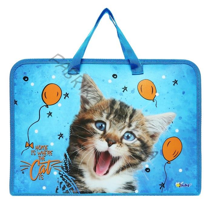Папка с ручками А4, 340 х 245 х 40 мм, пластиковая, ручки-тесьма, Оникс ПТ-14 "Ура-мяу!"