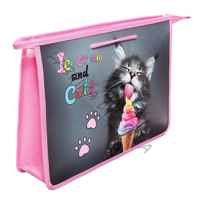 Папка с ручками А4, 340 х 245 х 75 мм, пластиковая, ручки-шнурок, Оникс "Котёнок с мороженкой"
