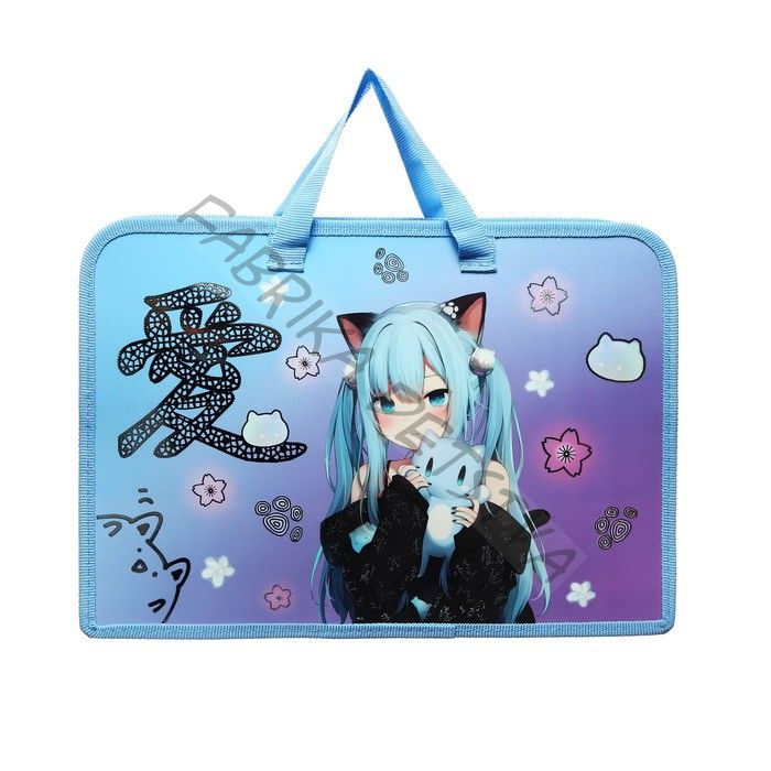 Папка с ручками А4, 340 х 245 х 75 мм, пластиковая, ручки-тесьма, ПТ-14-4-12 "Аниме Нэко" (объемный 3D-рисунок с эффектом металлика) 71211