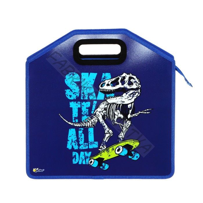 Папка с ручками А4, 350 х 265 х 135 мм (УВЕЛИЧЕННАЯ ШИРИНА), пластиковая, ПТ-16 "Дино на скейте" 68655
