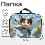 Папка с ручками текстиль А4 70мм 350*270 Artfox STUDY унив "Котик под водой"