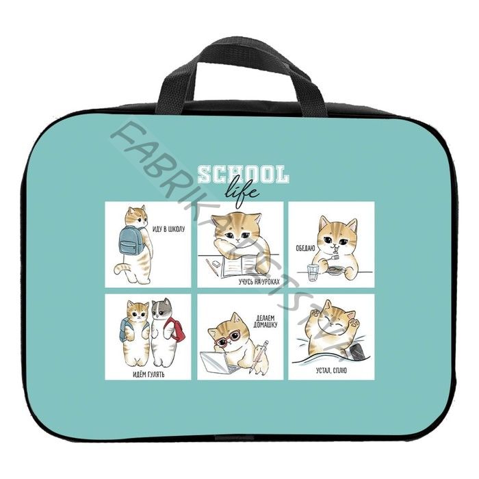 Папка с ручками текстиль А4 70мм 350*270 Artfox STUDY унив"Котик в школе"