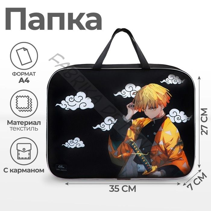 Папка с ручками текстильная А4, 350 х 270 х 70 мм, Calligrata "Аниме клинок"