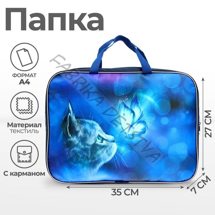 Папка с ручками текстильная А4, 350 х 270 х 70 мм, Calligrata "Котик"