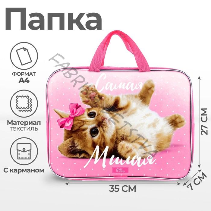 Папка с ручками текстильная А4, 350 х 270 х 70 мм, Calligrata "Самая милая"