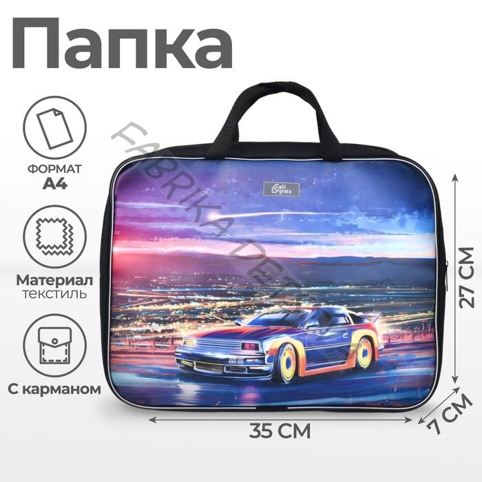 Папка с ручками текстильная А4, 350 х 270 х 70 мм, Calligrata "Тачка"