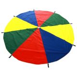3. Возьмитесь за край парашюта двумя руками сверху и поднимите его над головой. Совершите несколько шагов в центр, наполняя парашют воздухом. Оставьте только одну руку, а другой тяните парашют к низу через голову и за спиной. Удерживая край парашюта у земли, сядьте на землю. Оставайтесь внутри парашюта, до тех пор, пока из-под него не будет выходить воздух. Потом поднимите парашют, встаньте вверх, вынырните из-под него наружу.