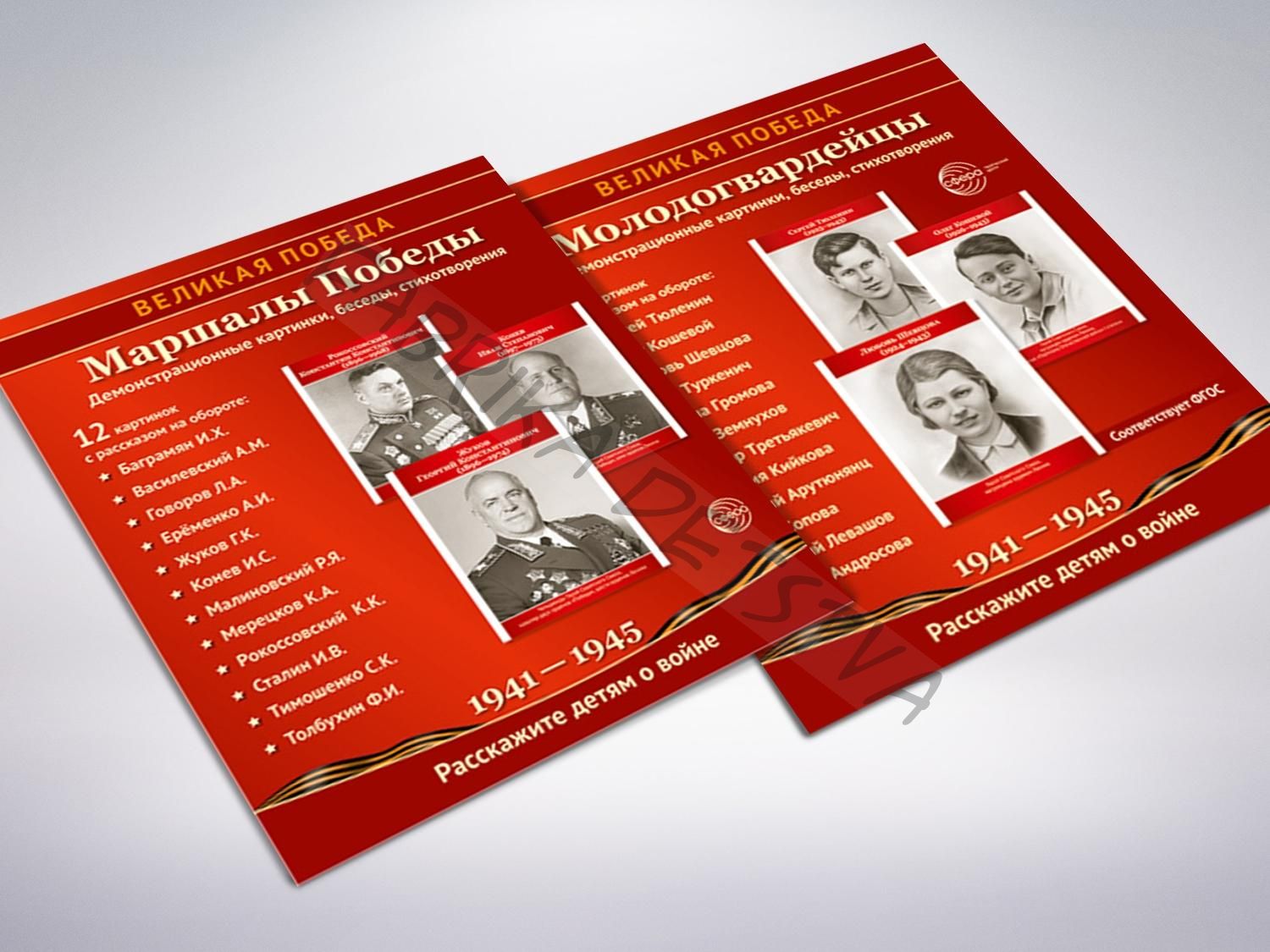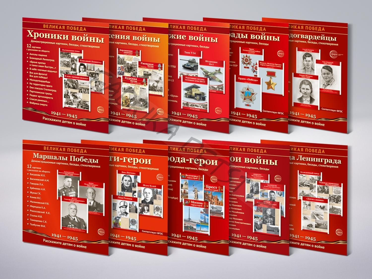 Патриотический комплект наглядных пособий «Великая Победа» создан для детей младшего школьного и дошкольного возраста. Он основан на достоверных фактах, рассказывает о героях Великой Отечественной Войны, содержит воспоминания очевидцев, повествует о великих городах, о хрониках и событиях, наградах, полководцах.