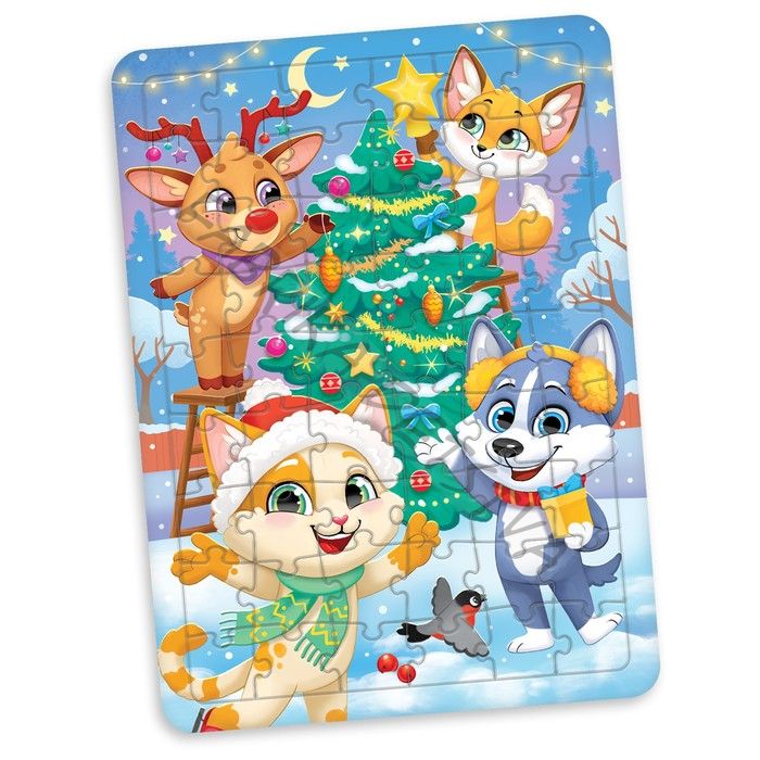 Новогодний пазл «Зверята в праздничных нарядах» — это увлекательная головоломка для детей от 3 лет, которая создаёт атмосферу зимнего праздника. Набор из 54 элементов помогает развивать логическое мышление, внимание и мелкую моторику, а яркие иллюстрации с изображением животных в новогодних костюмах поднимают настроение и погружают в сказочную атмосферу. Особенности Готовый пазл оформлен в рамке, что упрощает сборку и хранение. Классические прямоугольные элементы изготовлены из плотной бумаги, устойчивой к износу. Подходит для мальчиков и девочек, а также для совместного семейного досуга. Идеально подходит в качестве подарка к Новому году. Сборка пазла — это не только развлечение, но и эффективный способ развития когнитивных навыков. Ребёнок учится анализировать, сопоставлять детали и находить правильные решения, что укрепляет логическое мышление и усидчивость. Яркие изображения способствуют развитию цветового восприятия и зрительной памяти, делая процесс обучения увлекательным и полезным.
