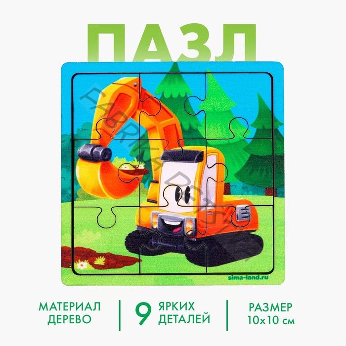 Пазл детский деревянный «Экскаватор». 9 деталь