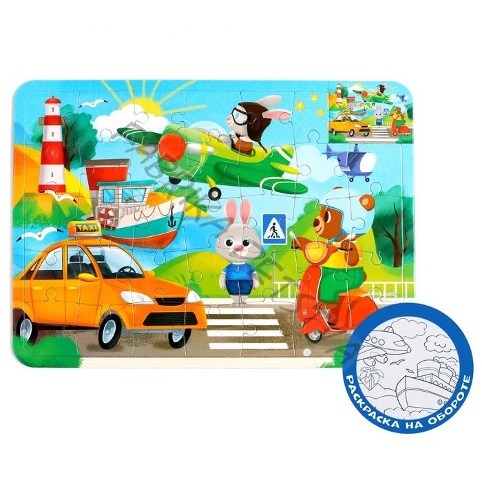 Пазл - раскраска в рамке «Транспорт», 34 детали